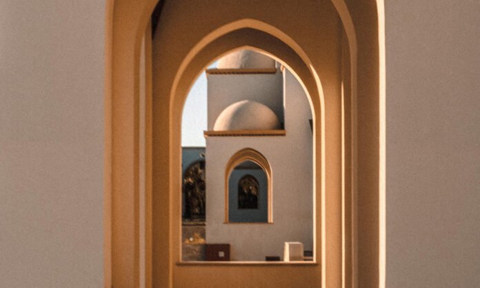 وبني المسجد بشكل أقرب للمستطيل، وبه من الداخل رواق القبلة، ومحراب ومنبر وصحن، بالإضافة إلى ساحة المسجد والمصلى.